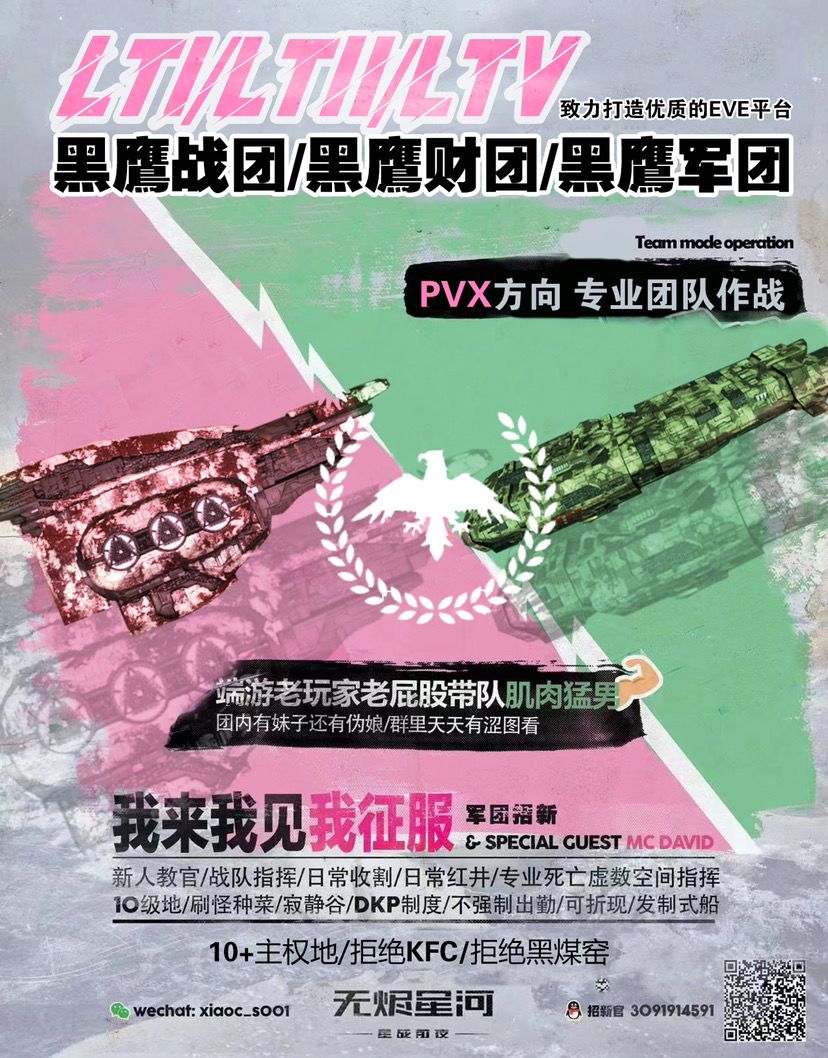 黑鷹大量招收各类玩家,我们致力搭建提供优质的eve平台。