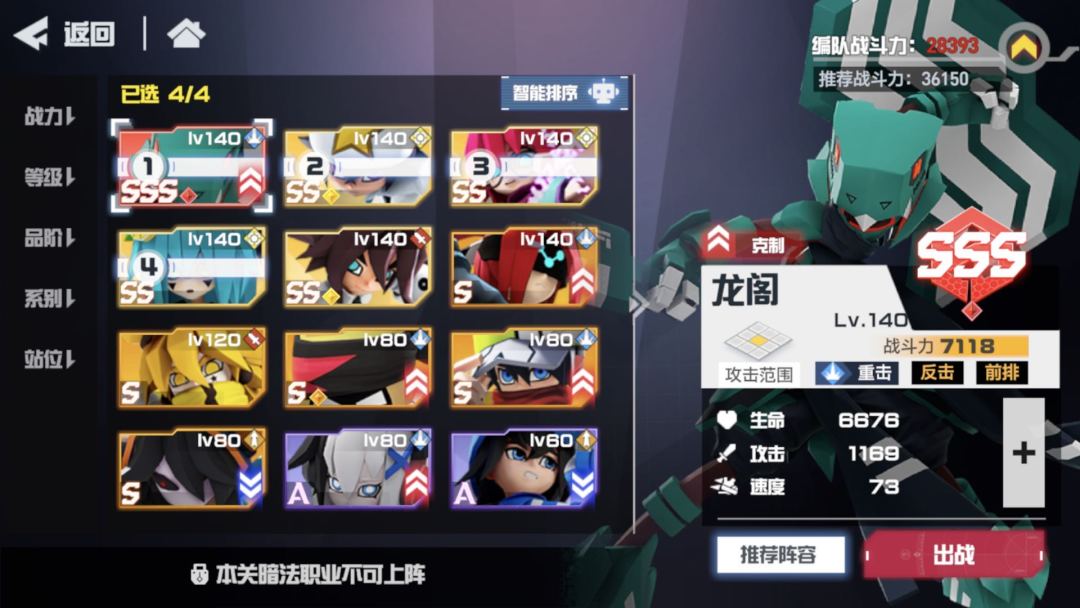 哇哇,第一个先说谁呢,当然是我第一个SSS的龙阁了(我不会说是因为我没抽到格瑞啊喂,后面出了莱耶斯也有过放弃的年头,最后还是坚持下来啦,),从头陪我挨打到末尾,任劳任怨,到后期小怪伤害高血厚,必须要快速清场,龙阁2技能就不开了,毕竟4元力,反击1000+的伤害,这元力我一般都省下来给雷狮开大或者给紫棠召唤斯巴达或者给安丽洁加盾等,1技能要加满,大部分的时候龙阁都没防御格子走的,毕竟攻击范围一圈也有弊端的(没有绿格子)