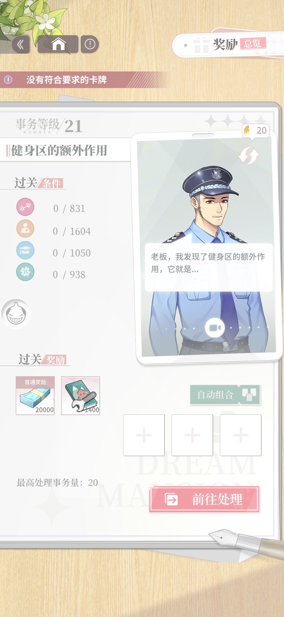 注意:我过20的时候点了一下自动,提示没有符合要求的卡。但我手动进去凑就凑够了。