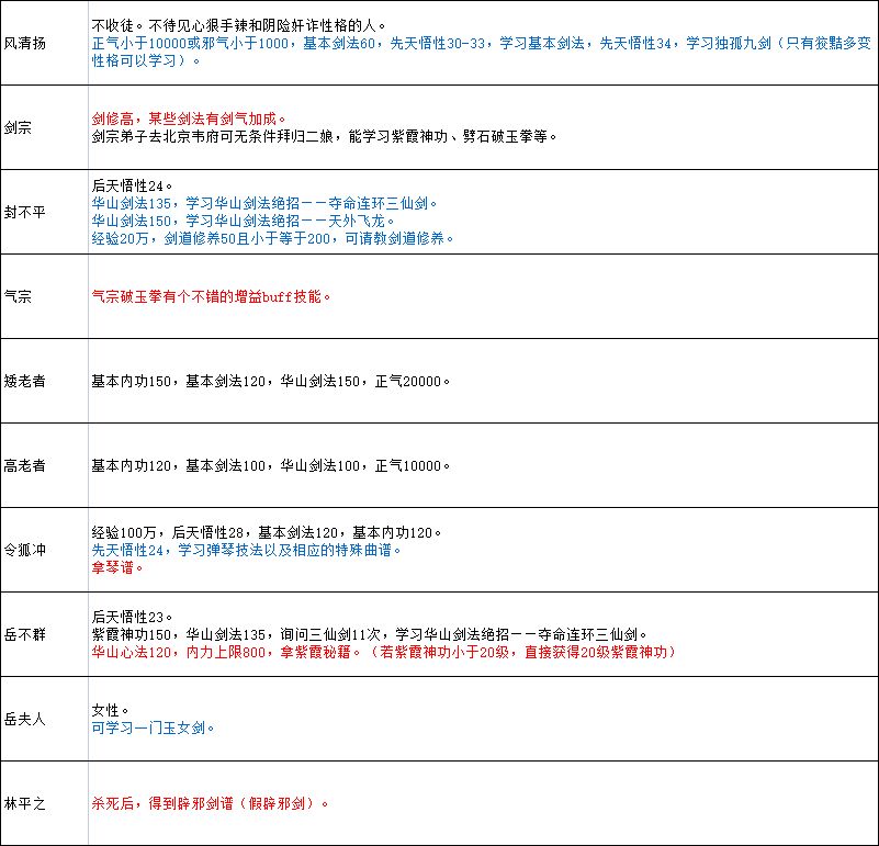 门派武学介绍: