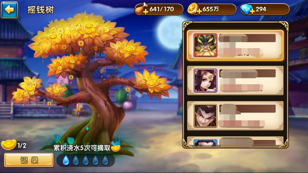 1、每个军团成员都有一颗摇钱树,每天都需要呵护浇水才能结出果实
