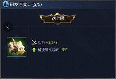 战斗科技主要使用于城外的活动,行军速度在初期频繁的移动中帮助会比较大,推荐优先点满,可以很简单研究到5级增加5%的效果;之后可以再研究5级增加5%的效果;前中期的帮助会比较大。