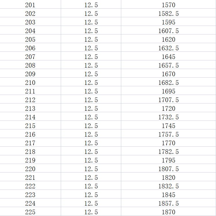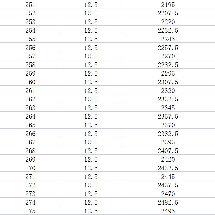 溢出换算表