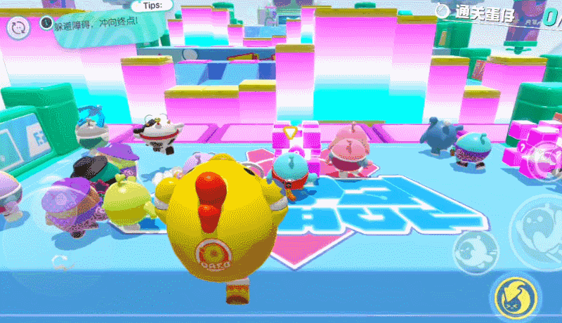 1. 巧用滚蛋夺第一竞速的一大难点就是障碍物,除了翻转的地板、摇晃的摆锤,移动的方块和向后的履带等等,都是阻碍我们速通的因素。对于普通的障碍物,找好时机可以慢慢跳过去,但是最快的方法肯定是直接滚起来。而且在“滚蛋”模式下,由于我们的速度变快了,跳跃的距离也会相应的变远,所以在面对一些需要跳跃(或者等待时间较长)的障碍时,可以直接远跳过关。
