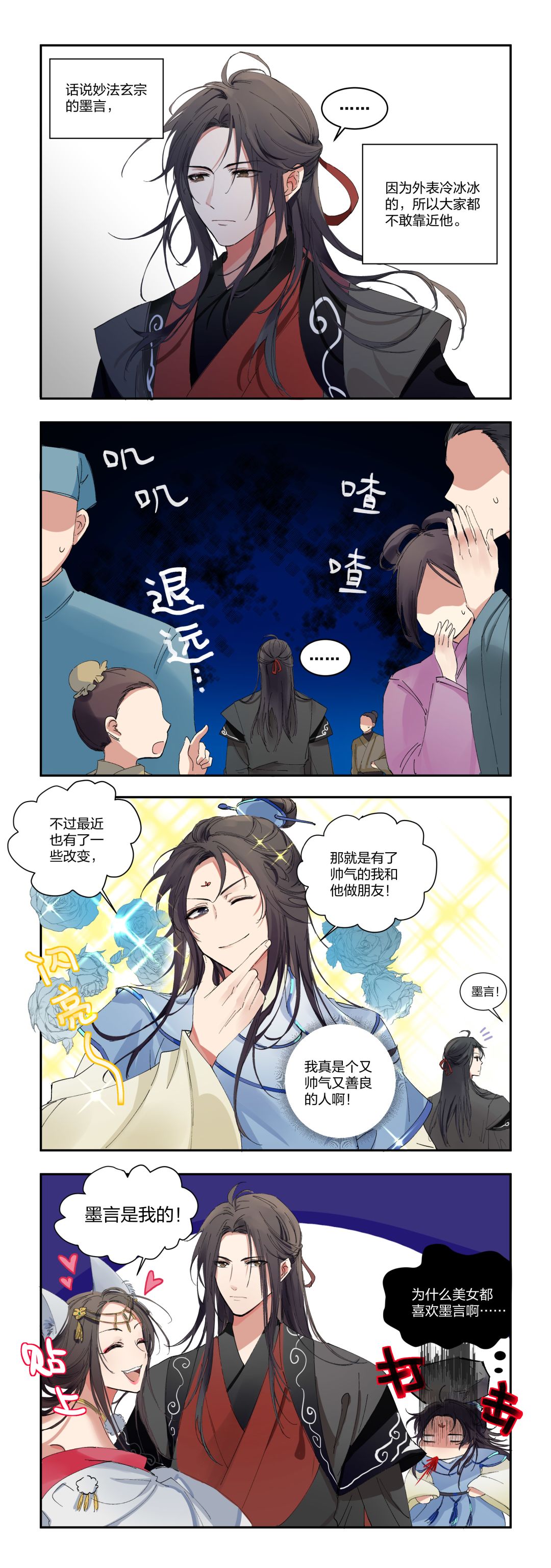 我们帅气的墨言师兄外表冷冰冰的,可是吓退了很多想要来和他亲近的人呢,不过不要担心,自从男/女主加入到门派来后,墨言的身边陆陆续续也多了很多朋友。