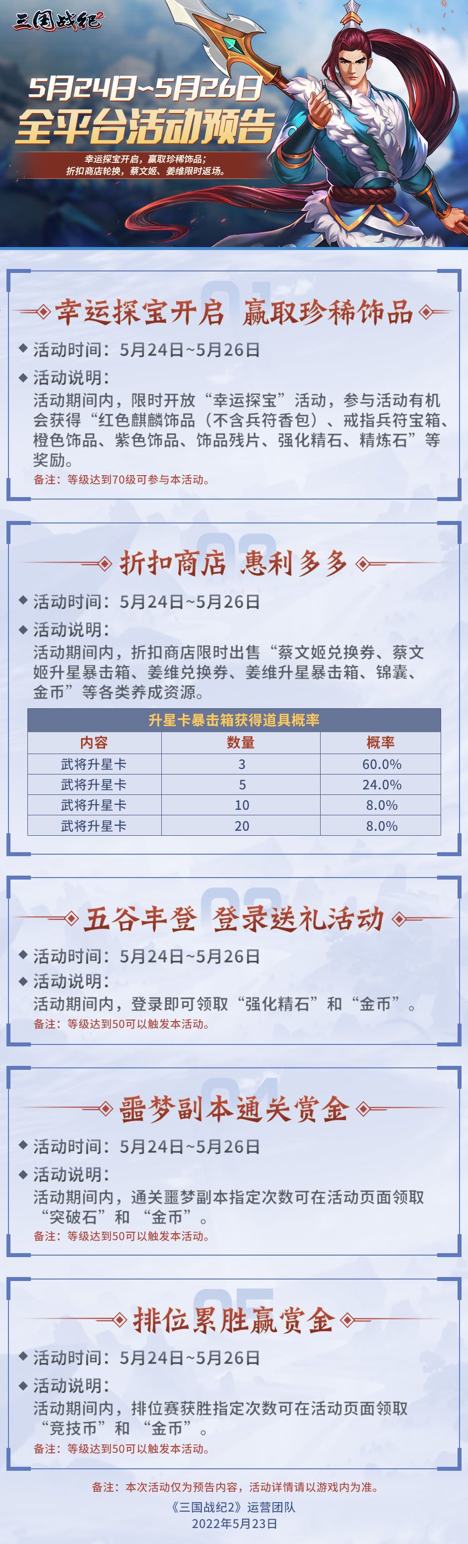 《三国战纪2》5月24日~5月26日全平台活动预告