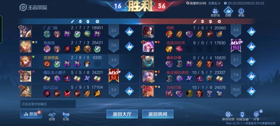 王者荣耀体验服有bag,主要是有人故意卡,还特别嚣张,我已经遇到了几次,对玩家很不公平,尽快修复,谢谢!