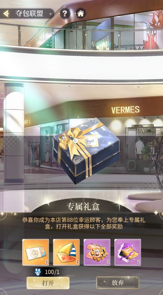 礼盒事件:三小姐成为商场的幸运顾客,有机会领取精美礼品!商场内礼盒分为3种,打开礼盒能够领取丰厚的道具奖励。