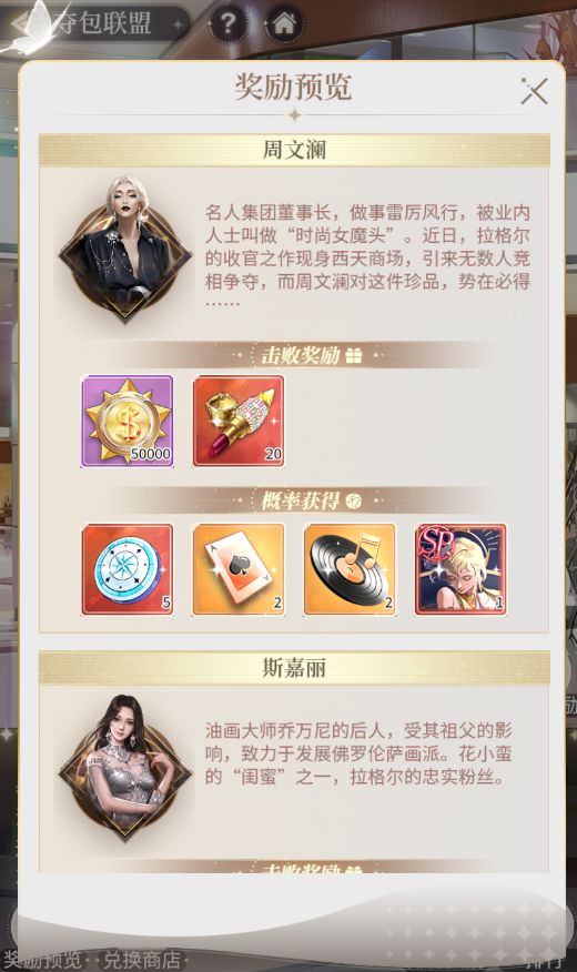 若击败大Boss周文澜,还可额外获得“禁忌权杖”(用于招募周文澜)并且有概率获得SP守护星维纳斯。