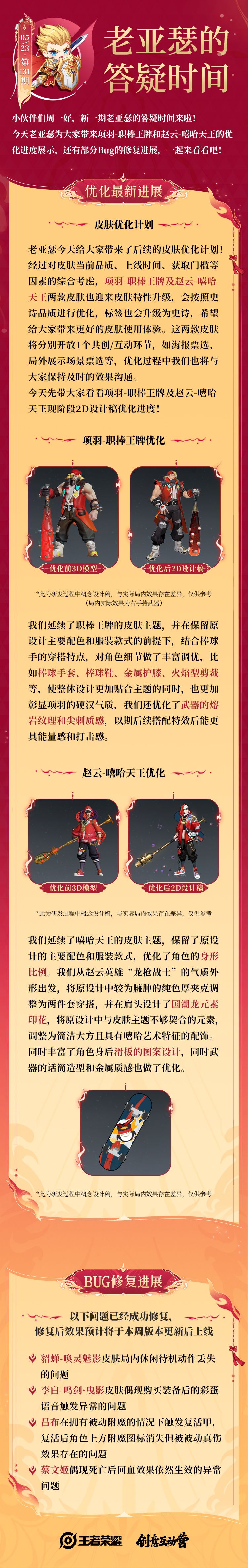 老亚瑟的答疑时间|项羽职棒王牌&赵云嘻哈天王皮肤优化计划及进展