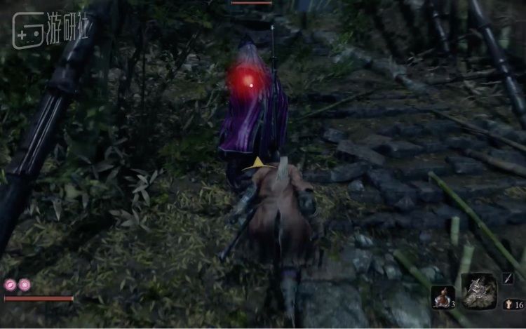 魂类游戏却选择了完全不同的道路,宫崎英高偏偏要把玩家想要的这种优越感一点不剩的全部榨干。比如,在《只狼》里血条的重要性被架势条完全取代,在敌人的架势条被打满之前,仅靠攻击消耗敌人的血量来击败敌人是非常困难的。而且敌人的架势条在玩家停止攻击的间隙是会迅速复位的。也就是说,敌人与玩家,都有了类似无限血量或呼吸回血的能力。而这,就是所谓的众生平等。玩家再也无法通过初始设定上的优势来碾压敌人了。而这个设定就成了玩家受苦的来源。我在《只狼》里前期所受的最大痛苦,很让人意外的并不是来自某个boss,而是拜一个小怪-紫衣忍者所赐。恰恰是因为紫衣忍者并不是一个精英怪,而我却一直都没能通过正面硬刚的方式打败过他,这给了我极大的挫败感,而且这也导致我最终放弃了在多年的游戏生涯里所坚守的绝不卡关超过当晚的原则。一个区区的的小怪就成了一个永远无法翻越的高墙,我终于认识到了什么叫做来自无力感的绝望。