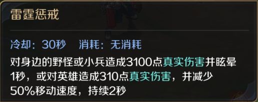 雷霆惩戒:对野怪伤害不变,增加了对英雄造成真实伤害和减速的功能,伤害数值是对野怪伤害的10%。