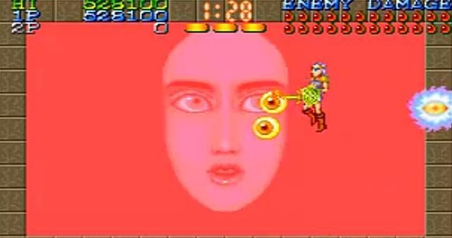 在街机厅几乎没有玩家敢和这样一个诡异的脸对视五秒以上,因为BOSS的攻击方式不仅是从眼里射出弹体,还会从嘴巴里放出可以弹跳的炸弹,根本不会给玩家五秒种的时间去和她对视,除非玩家已经没有了继续挑战的打算。