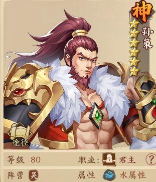 总结:神将孙策的设计很赞,非常有特色和亮点,很符合小霸王的称号,给策划加鸡腿。虽然孙策叠10层战意和死爹死老婆之后触发孤家寡人,四维属性超强,但这并不影响游戏的平衡,因为他再强也只能一回合杀一个,而且叠BUFF和死队友都需要回合和时间,不至于完全的无敌。资金方面想小氪的玩家可以入手培养孙策单核,推图打四象都能爽快通关,算是水系投资小回报高的一个流派。最后祝大家五一快乐!神将多多!