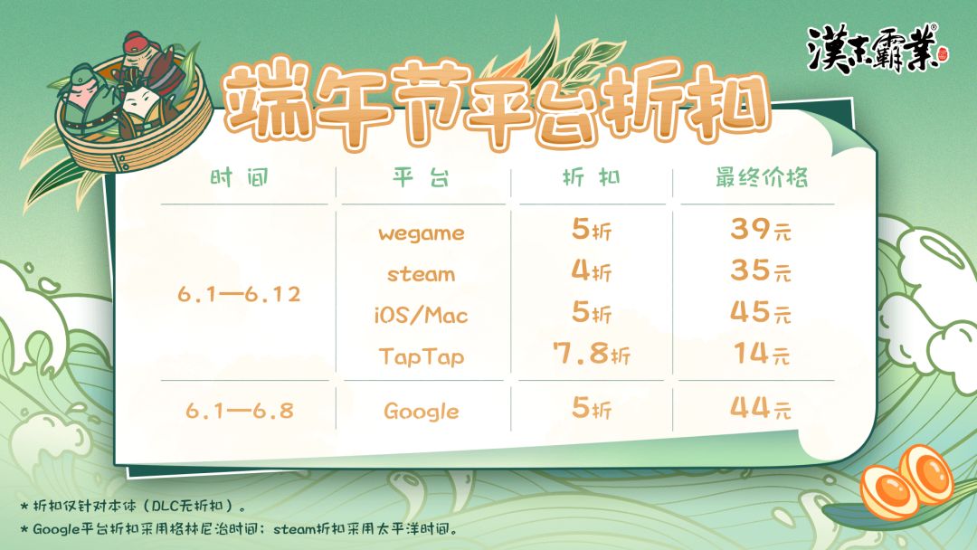 美味棕飘香,端午送安康!《汉末霸业》端午节全平台折扣公告!