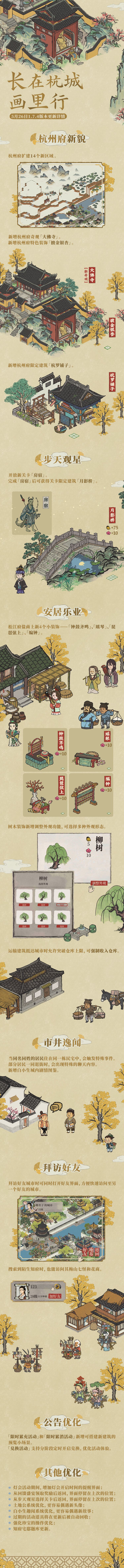 本次更新后可体验杭州府新貌、新关卡、新建筑以及诸多优化内容。