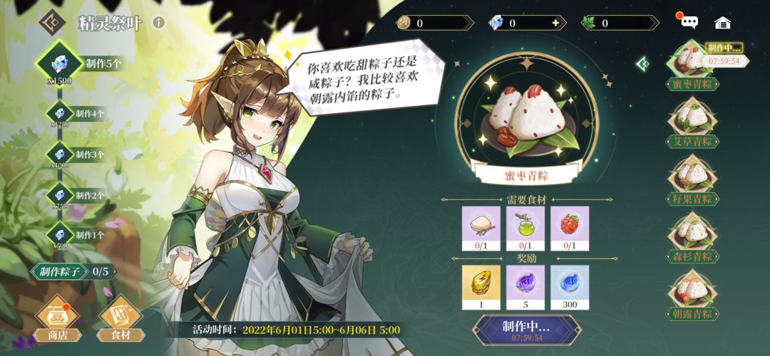 ◆绿野盛叶可以在活动商店的【兑换商店】页面中,兑换制作粽子所需要的的各种食材以及各种物品道具。