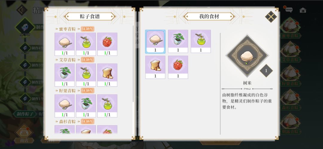 ◆每种粽子所需要的食材各不相同,食材足够时,就可以制作对应种类的粽子。