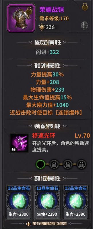 说明:宝石等级13级,强化70。适用与150~180等级区间
