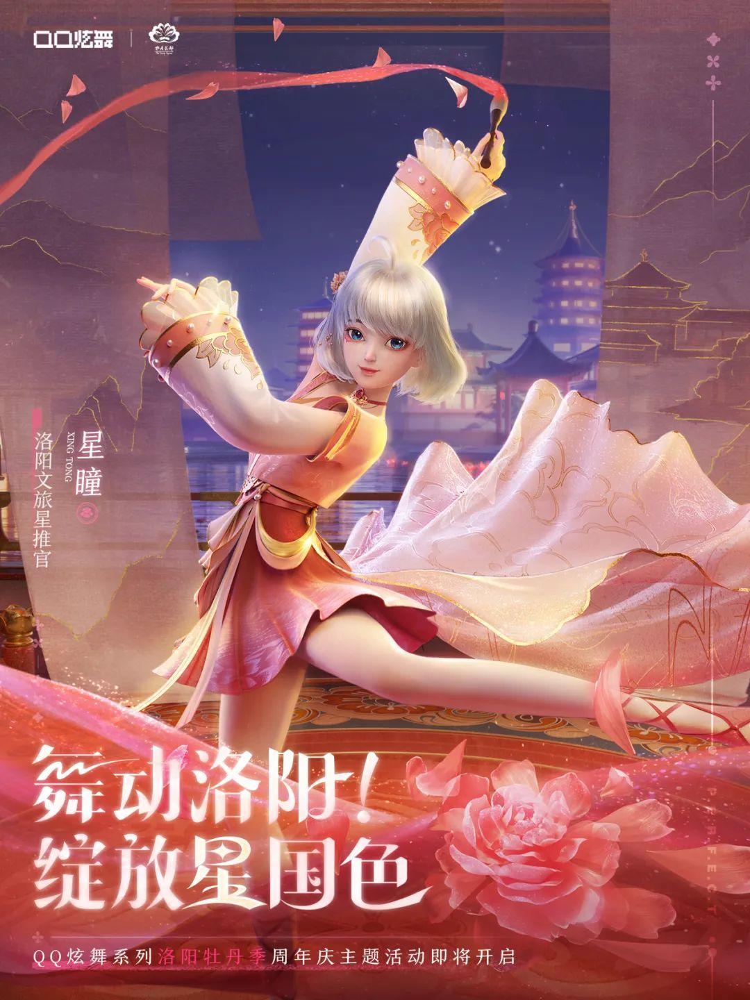 2022QQ炫舞品类十四周年庆之际,联动河南洛阳官方,开启洛阳牡丹季周年庆主题活动!QQ炫舞系列虚拟代言人星瞳携手国风音乐合伙人赖美云,共同演绎周年庆主题曲《花宸令》。