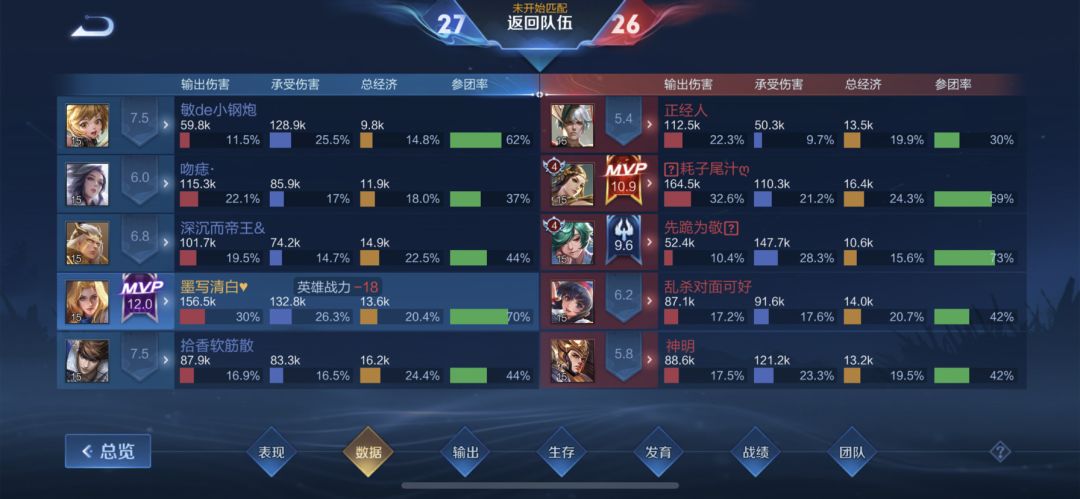 百分之十几的输出怎么好意思玩射手啊?我就随便找最近打的几局基本都这样。