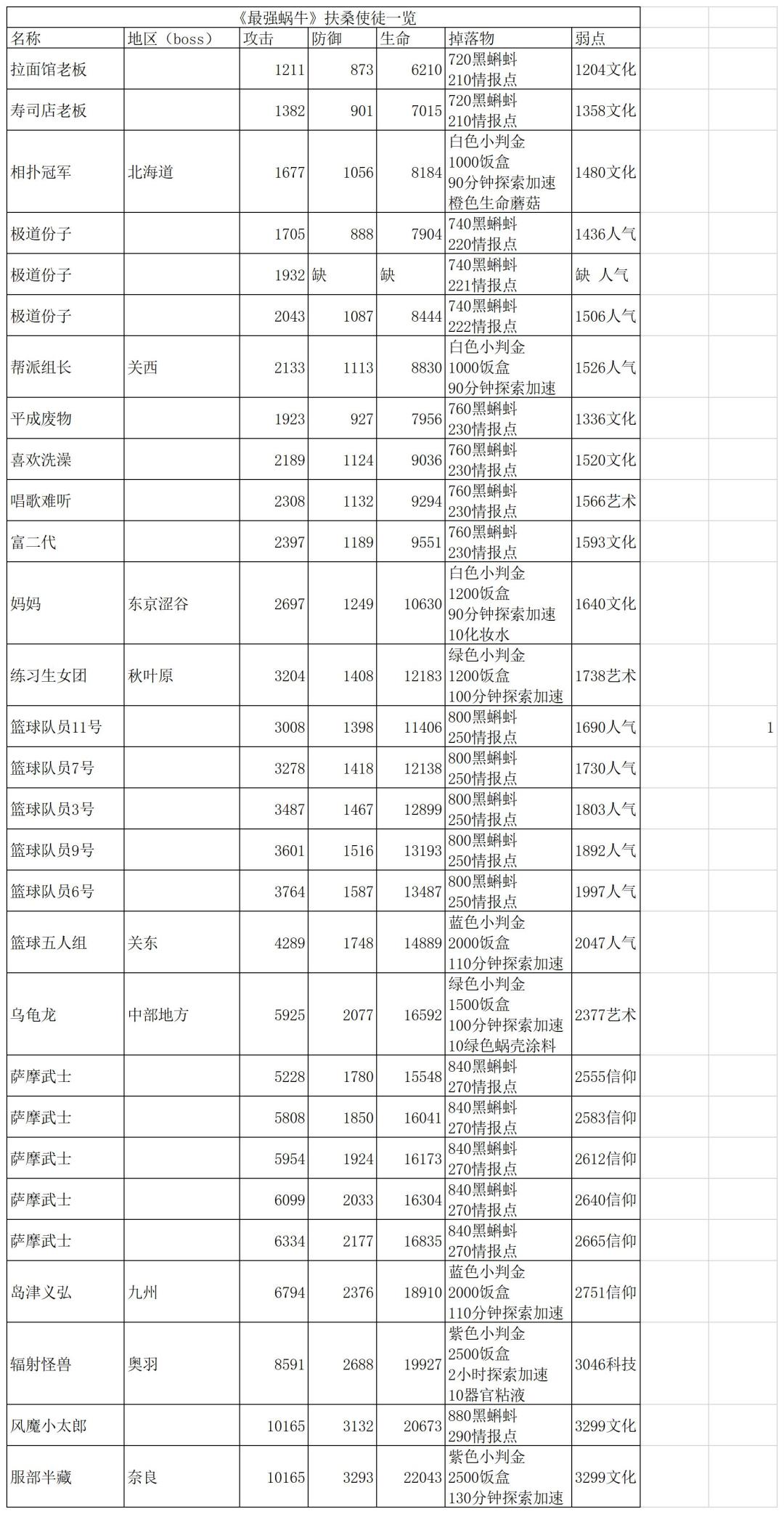 《最强蜗牛》扶桑使徒一览(待续)