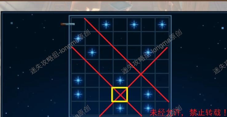 找到所有没有和星星相交的对角线,找到相交点,如图131.2只有一个交叉点在格子中。131.2