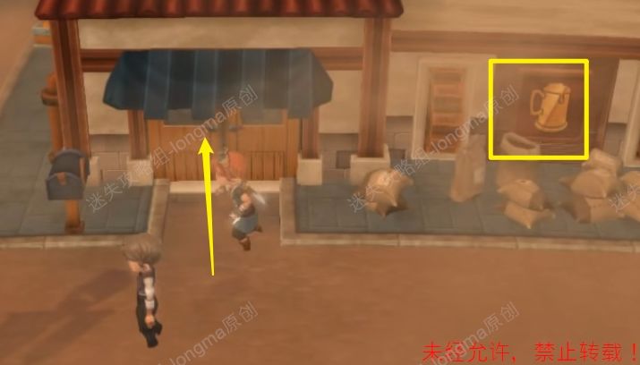 128.找到旅馆(墙上有啤酒杯标志),进入旅馆内,从左边过道右边的门进入院子。128 128.1