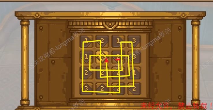 148.将【时光之石】放在下面的祭坛上,然后返回平台,从右上角的阴影开始,将所有亮起来的地板全部走灭,不可以踩在已经变暗的地板上。