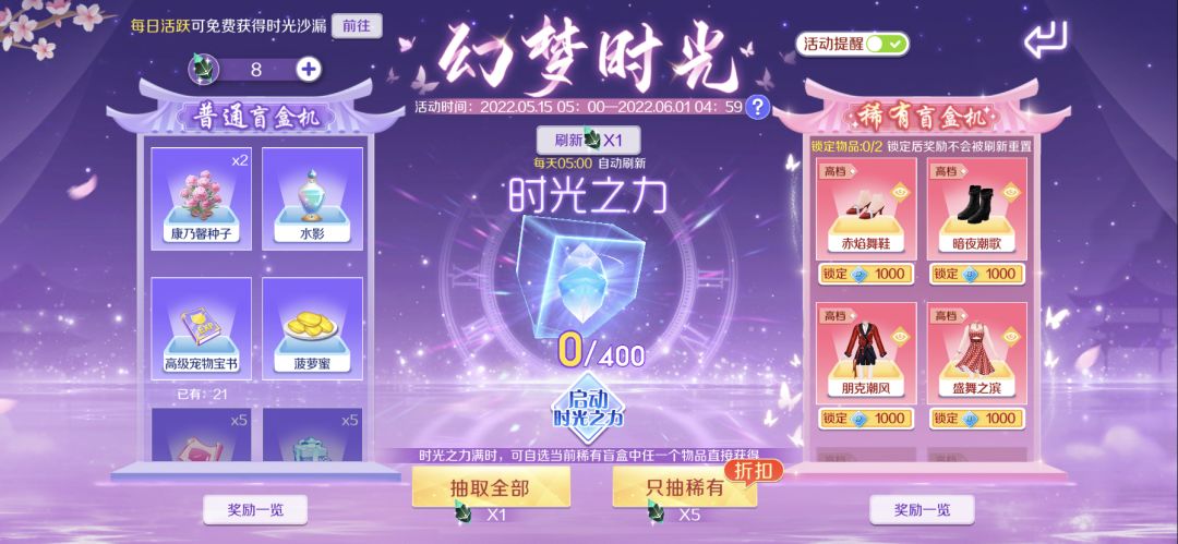 时光商店已经开启啦!小主人们使用时光沙漏就能抽取稀有盲盒机的奖励,多款美衣都在盲盒机中等你带走哟~爱了爱了~