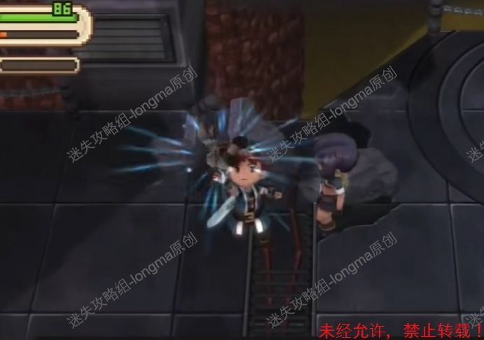 195.向左前进踏过浮桥,遇到一个水晶攻击水晶场景,会从三维画面变成二维画面,通过三维和二维画面的转换,闯过这个迷宫,来到有4个马基石的位置。195