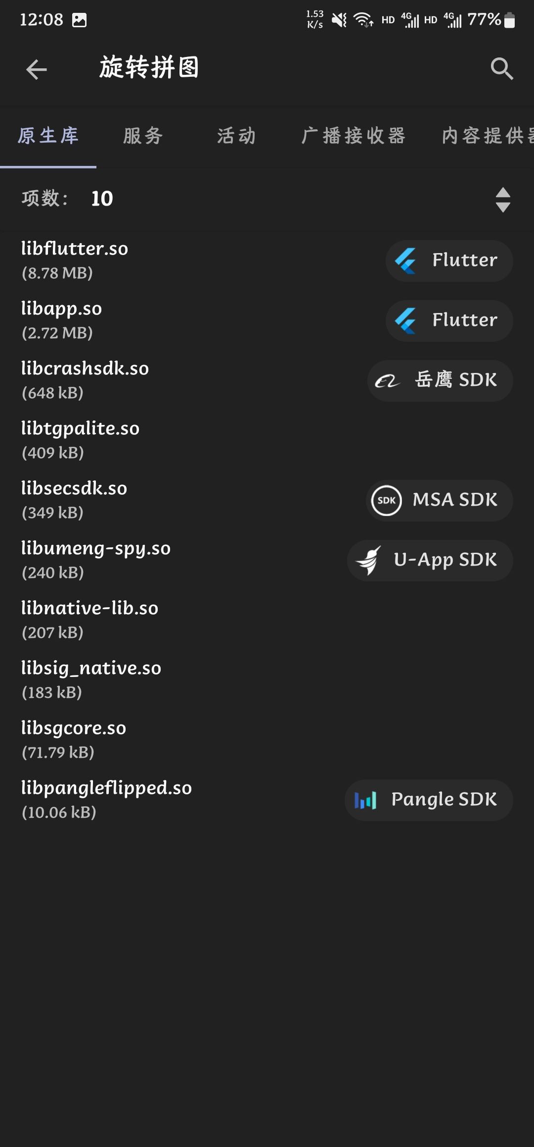 字节跳动穿山甲,华为,快手,腾讯,阿里,友盟,估计是广告推送商的服务都接了个遍,虽然是免费游戏,但是也太过分了😅😅