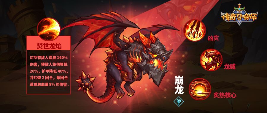 1【英雄】崩龙,5月27号登场,拥有焚世龙焰、凶灾、龙威、炙热核心四个技能