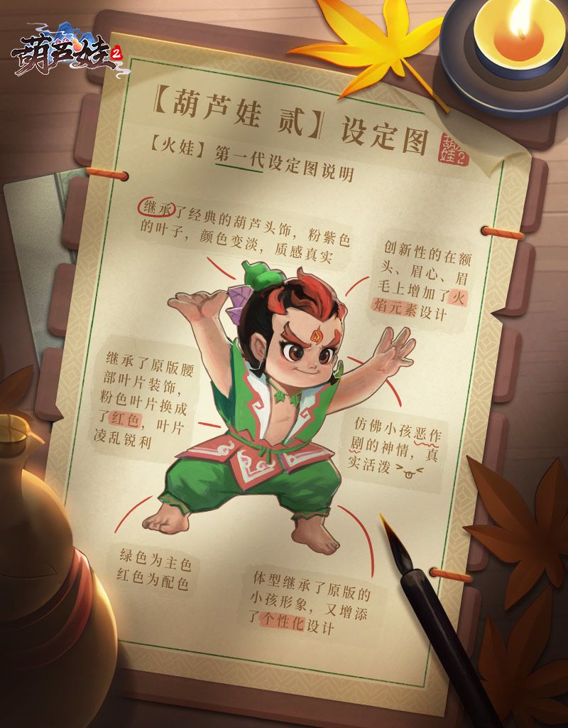 村民大大们,大家好,今天甲仔好不容易逮住我们的主美大大,为大家揭秘我们【火娃】的形象设计思路,希望大家能够喜欢火娃,喜欢我们的《葫芦娃2》手游呀!