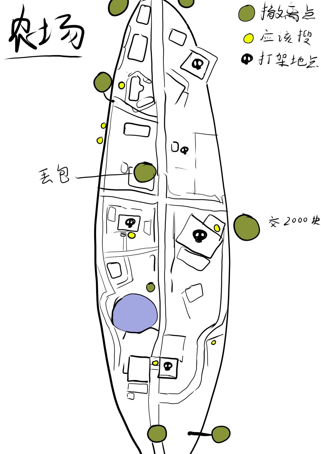 说正事,现在新档多了很多萌新,大家图生地不熟,清物资点和打架都不是很熟练,咱在这里为大家带来农场的跑图攻略昂。