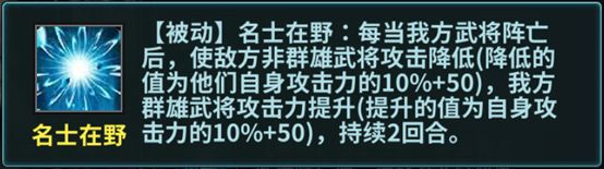 被动技能-名是在野:“献祭”武将,提高自身输出。