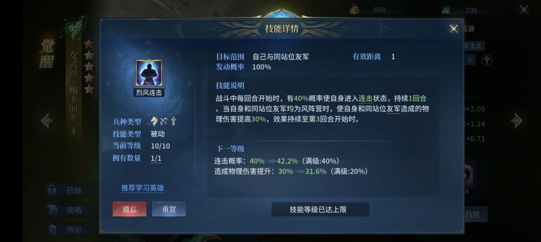 麻烦修复一下这个烈风连击,百分之四十触发,每次刷6基本上就触发一次或者不触发,而且技能加成满级百分之二十,这个加百分之三十