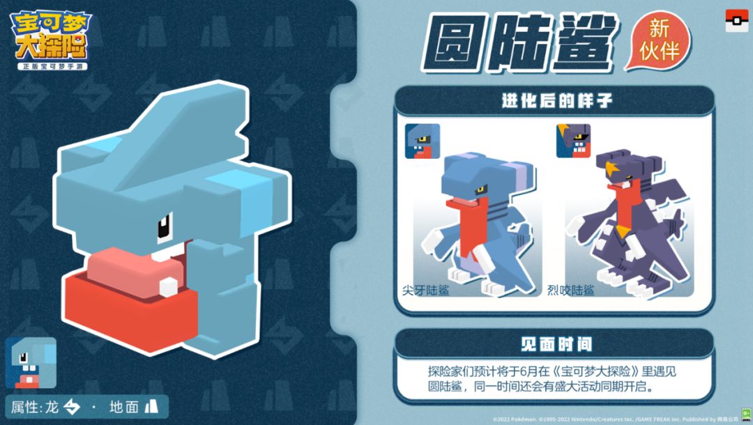 作为众多训练家最喜欢的宝可梦之一的烈咬陆鲨,据说也将在六一期间登岛和探险家们成为伙伴。大家准备好和这只强力的宝可梦一起出发探险了吗?