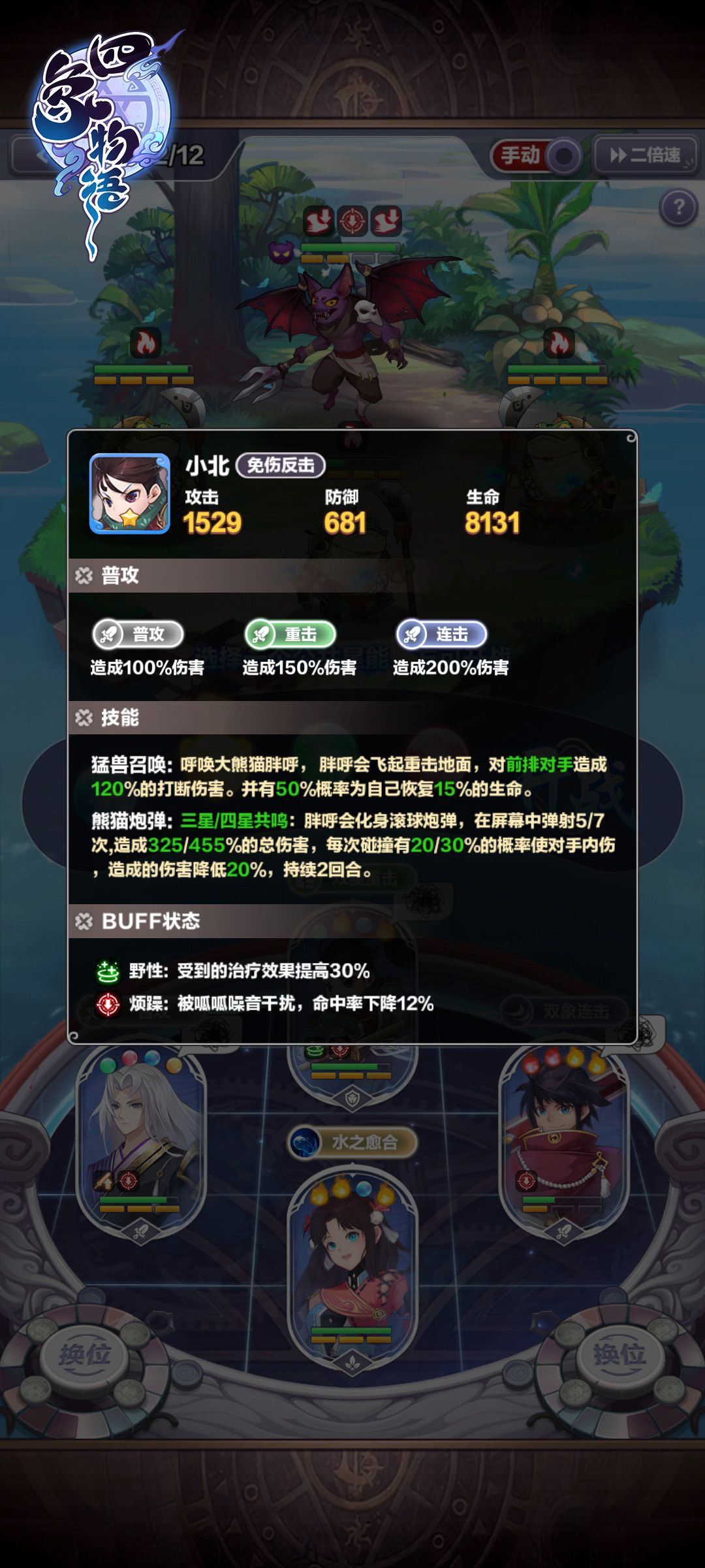 除了主动技能的组合之外,在《四象物语》中还有被动技能的互动组合等着星主大大们去挖掘,同样的,咱们直接上例子!