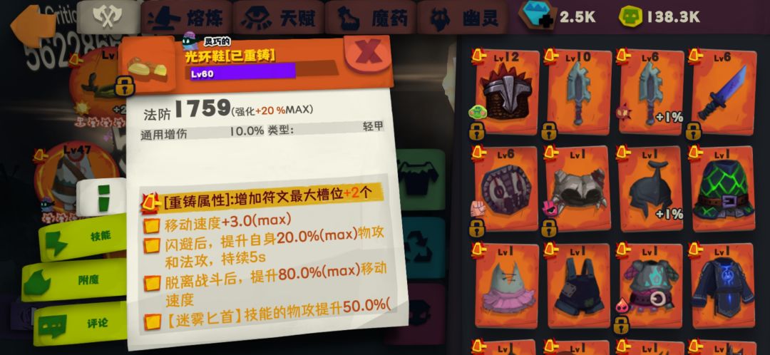 鞋子光环鞋加攻速移速。