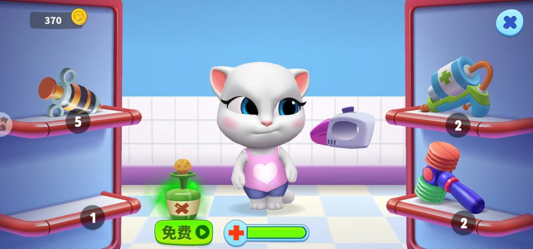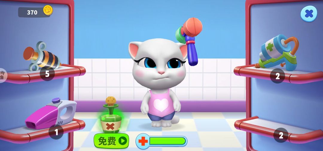 (1)温度计。温度计是右边第一个道具,可以帮助我们测量汤姆猫家族成员的体温,找准病根,对症下药。