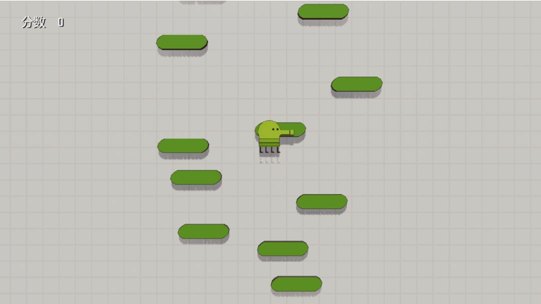 涂鸦跳跃虽然看上去是一款玩法非常简单的小游戏,只需控制最基础的方向键,不断向上跳跃即可。但是中途会出现各种意想不到的小道具,还有不同颜色的格子作用也不一样,绿色是实体格子,多次跳跃也没事,但遇到白色格子却只能跳跃一次,第二次格子就会消失,还有棕色的断裂格子一碰就消失,蓝色的移动格子等。