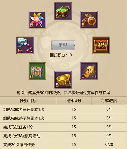 活动期间,完成副本玩法,可额外获得活动积分,消耗活动积分即可进行抽奖