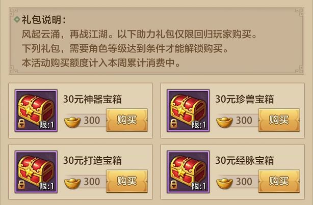 初级礼包适合新区玩家购买,绝大多数少侠则更需要中级及高级转换券,对于绝大多数的少侠来说,中级礼包的第二档性价比最高。