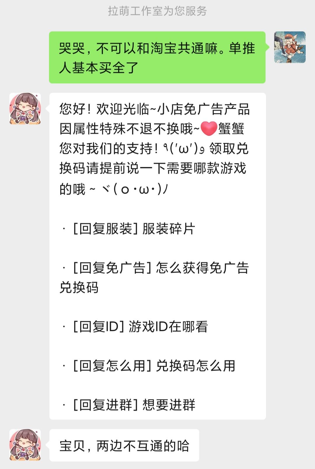 注意:两边店铺购买记录不共通;