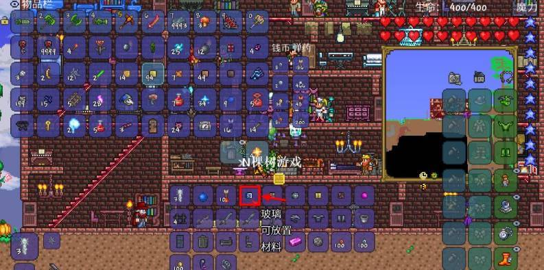 6.最后将玻璃瓶放在工作台、木平台或桌子上,这样一个简单的药水制作台就做好了,站在药水制作台旁边打开制作面板,就能合成药水了。