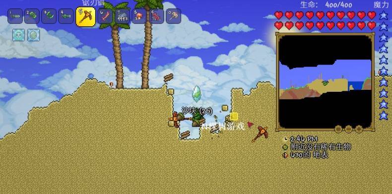 1.打开游戏,用任意类型的镐子挖掘沙块。
