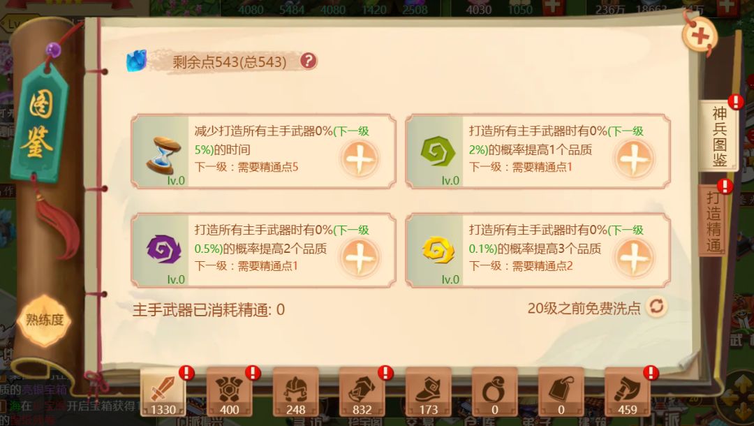 神兵图鉴精通等级提高后,将获得额外的精通点与随机奖励道具
