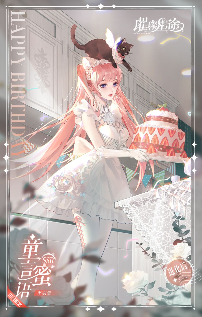 5月30日 - 6月6日 ,季羽童生日庆典活动【童言蜜语】甜蜜来袭。活动期间,可使用特殊道具及黑卡在特殊卡池【捕梦朝夕】中抽取限定造型[季羽童SSR·童言蜜语],活动结束后暂无放出渠道。详情敬请关注后续资讯。