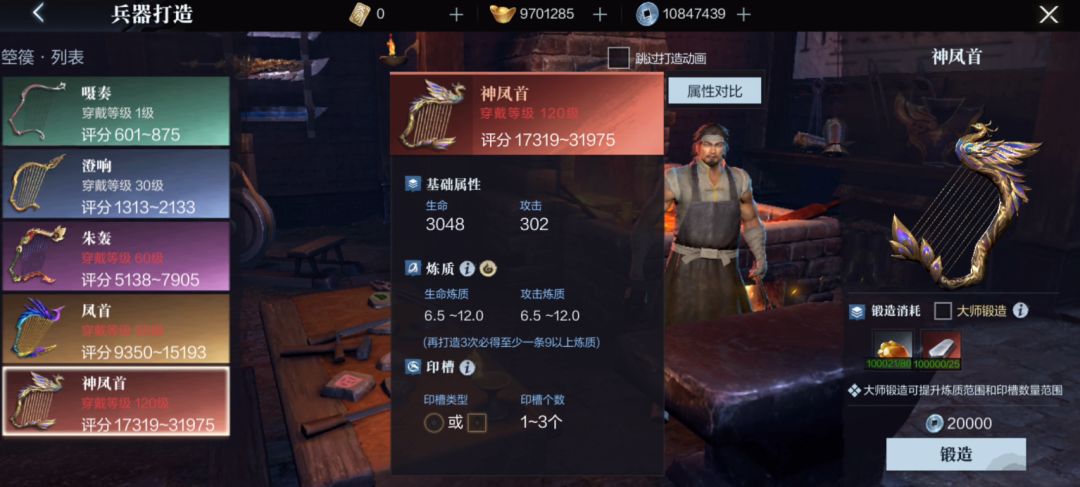 【蓄力攻击3】双手高速连弹箜篌向前方连续释放音波,最后释放一个超能音波终结敌人,总计造成300%攻击力的伤害。